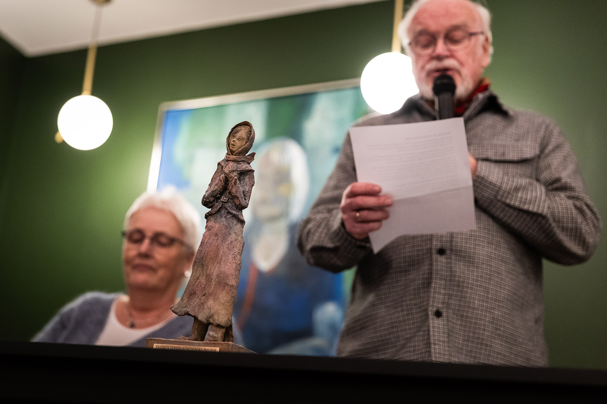 Ims mottok den eksklusive An-Magritt-statuetten av Per Sverre Dahl under årsmøtet til Teatrets Venner mandag kveld, en unik kunstgave som tidligere er gitt til Hildegunn Eggen, Hans Petter Nilsen og Liv Ullmann.